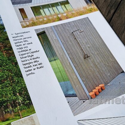 Plašāk par šo dizaina māju lasi žurnālā DEKO, Objektā ir uzstādīti Lat Met standarta produkts moduļu veida bīdāmo vārtu cena, kas pēc klienta dizainera ieceres ir apšūti ar vertikāliem koka dēlīšiem un aprīkoti ar vārtu automātiku. Produktu cenas vara redzēt spiežot uz saites