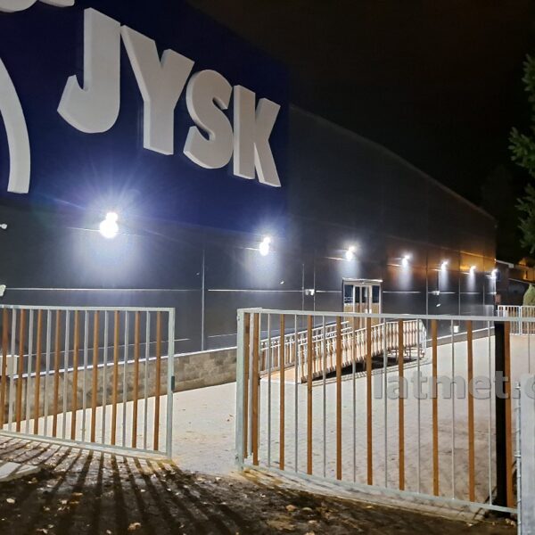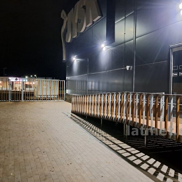 Lat Met šajā komercobjektā pēc būvnieka pasūtījuma izgatavoja pandusu, margas, kāpnes, nožogojumu, vārtiņus un jumta evakuācijas kāpnes. Visi metāla izstrādājumi tika karsti cinkoti, koka izstrādājumi izgatavoti no termokoka, beicēti un eļļoti, tādā veidā nodrošinot labu izskatu un ilgstošu kalpošanas laiku.
