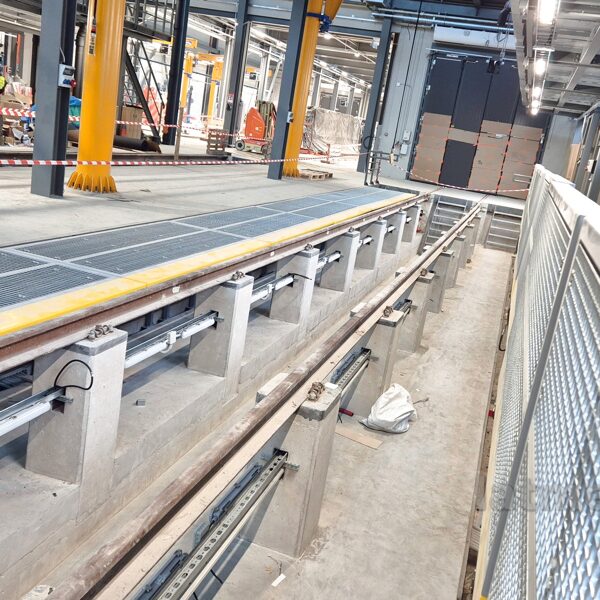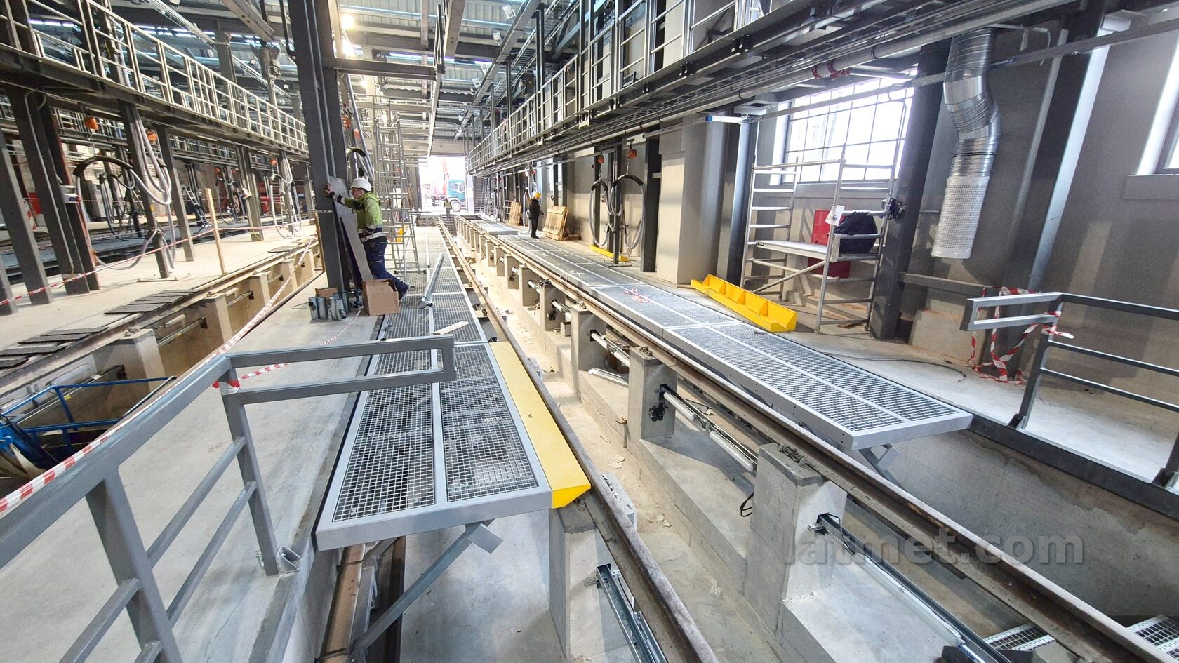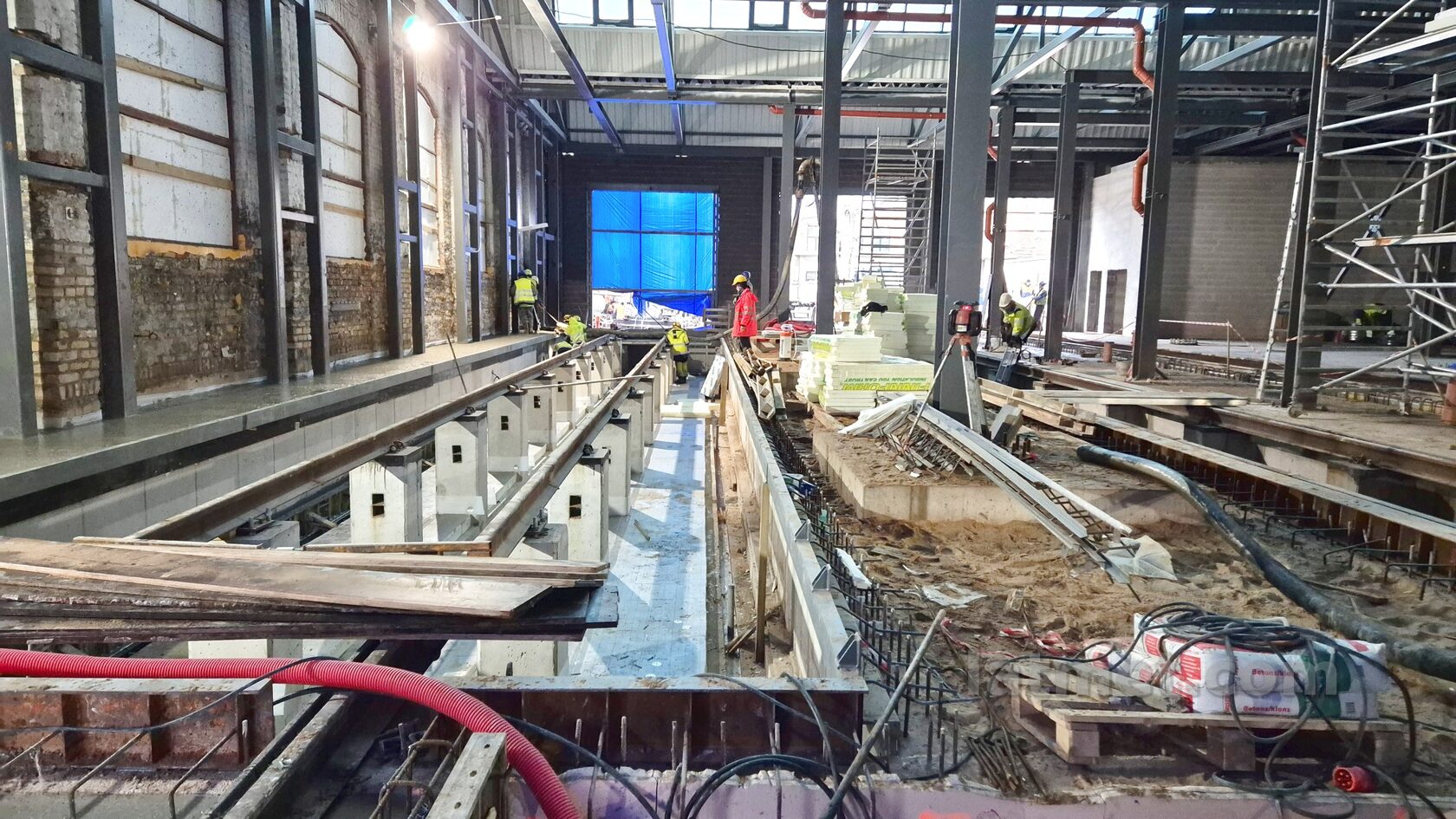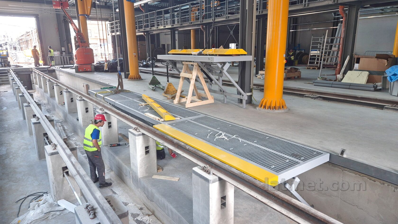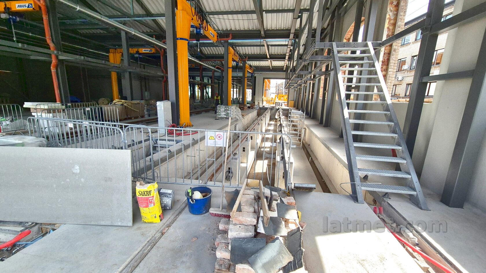 Depo tramvaju apkopes šahta sagatavota montāžai -
