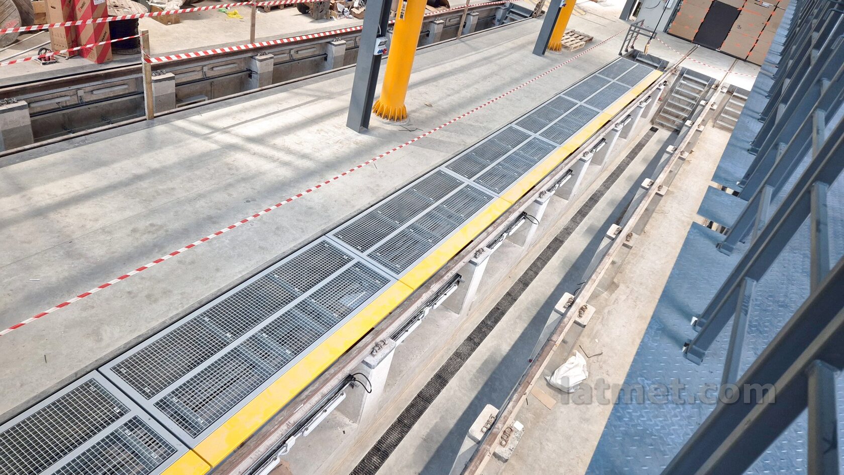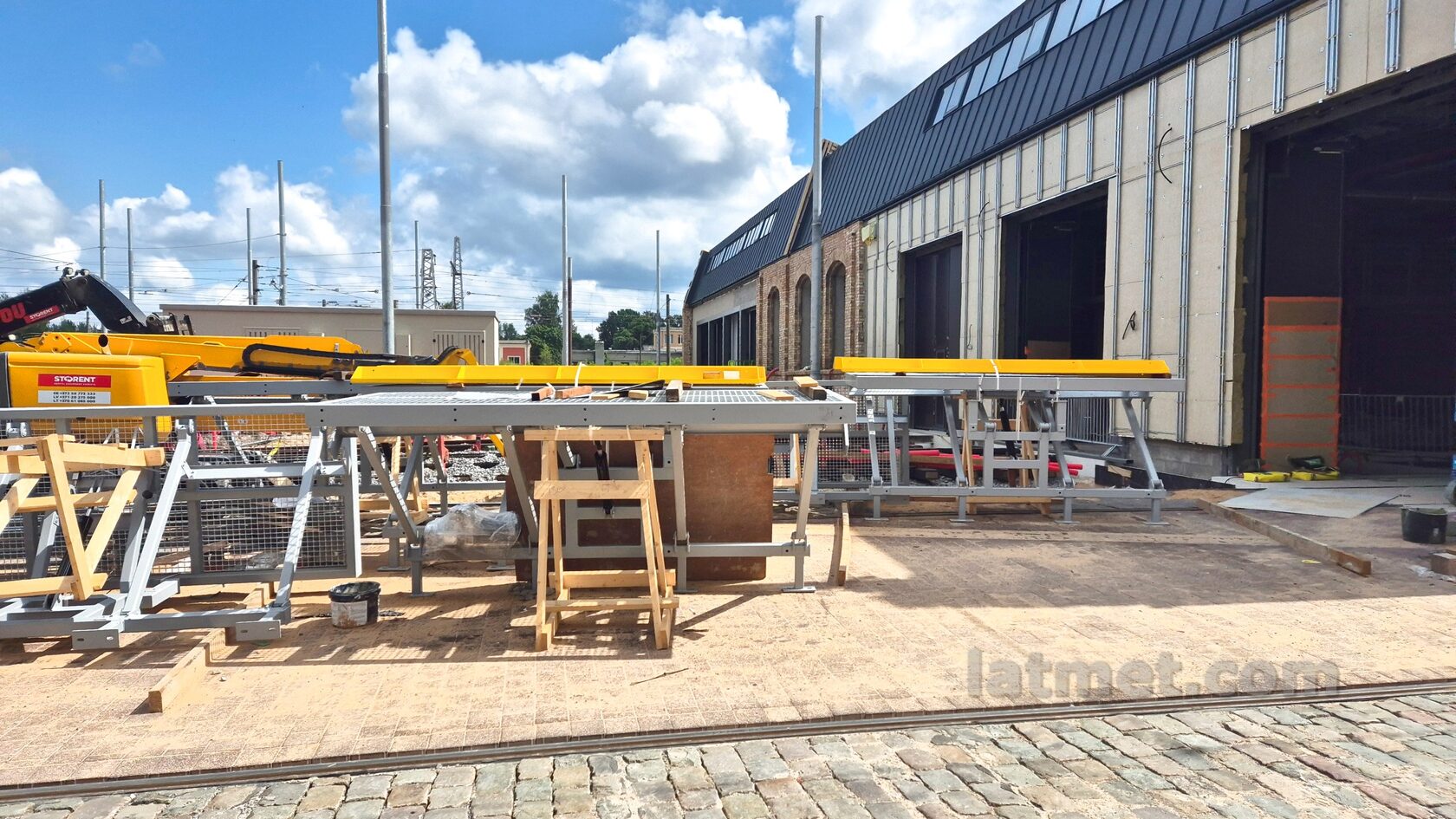Tramvaju platformu montāžas vietā būvniecības procesā -
