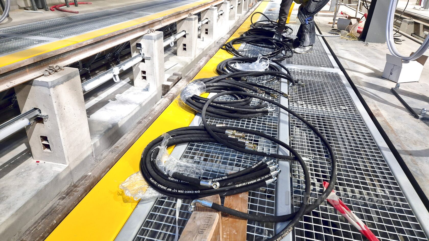 Hidraulisko sūkņu montāža tramvaju platformām -