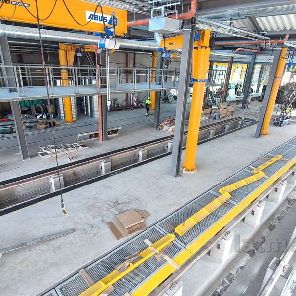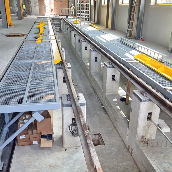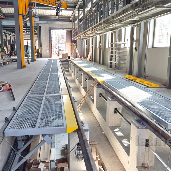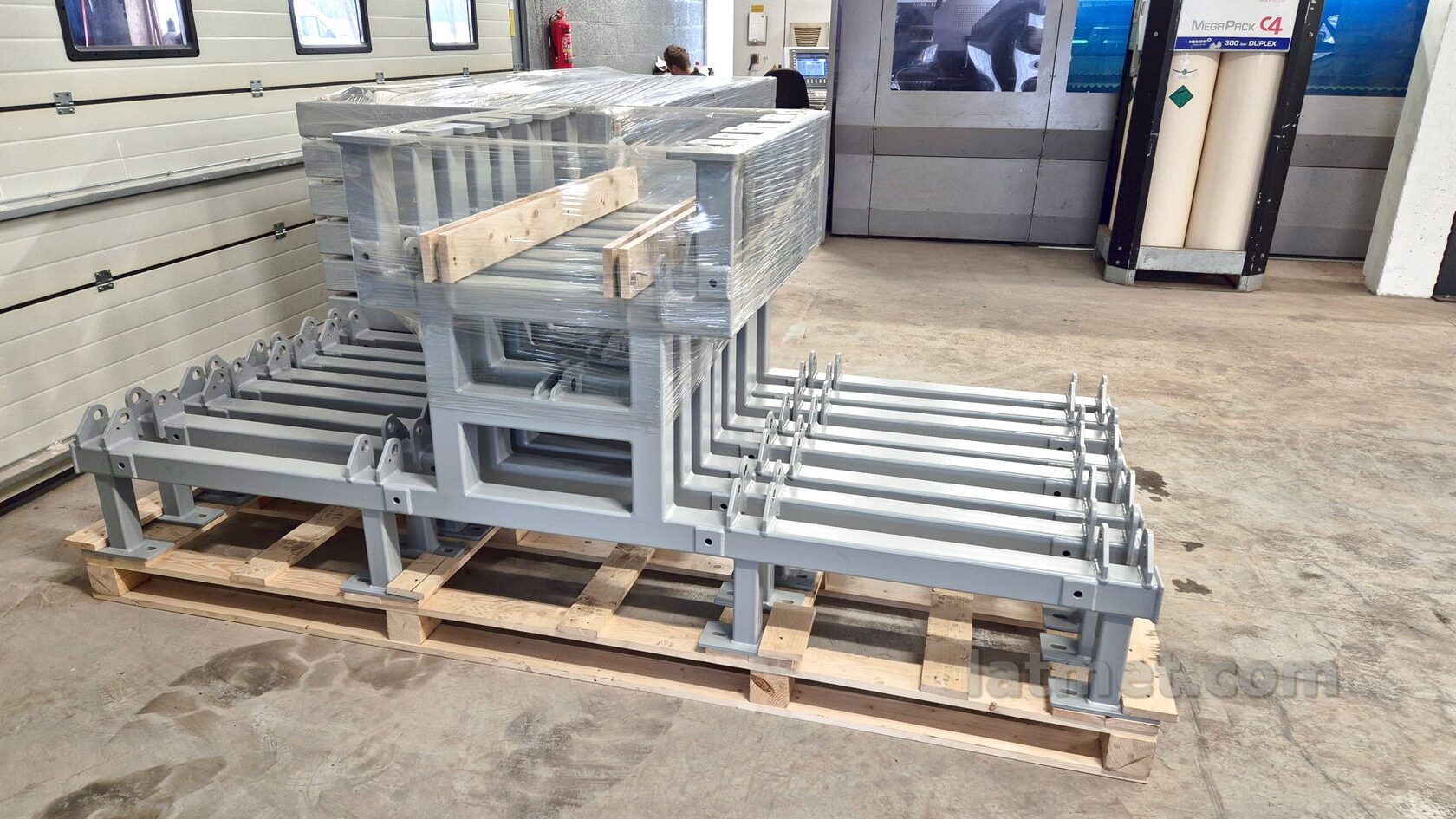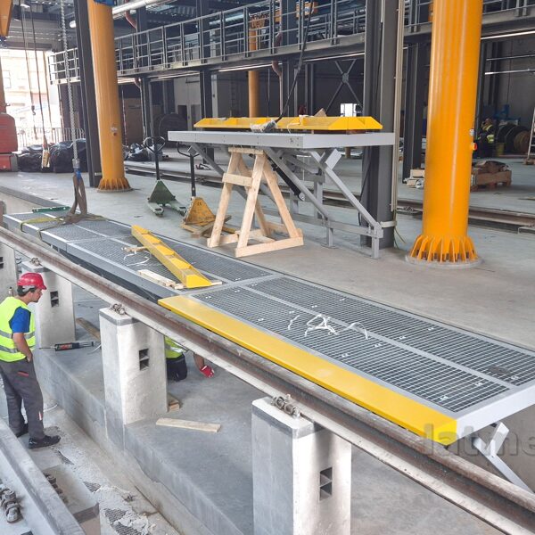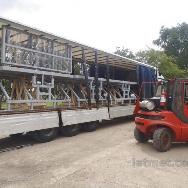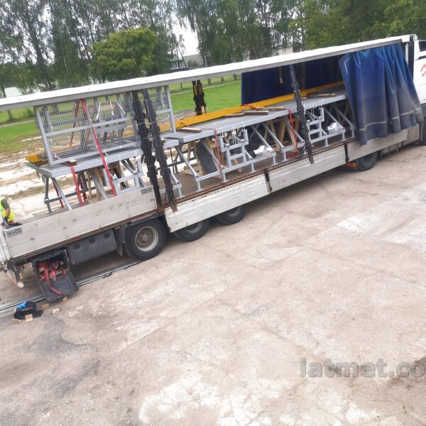 Pēc būvniecības uzņēmuma Aimasa pasūtījuma mēs 2025 gadā Rīgas satiksmes tramvaju depo vajadzībām izgatavojām Hidrauliski paceļamas tramvaja apkalpes platformas vākus. Kopējais apjoms 40 gab, kopējais apkalpes zonas garums 120m, Izgatavotās platformas ir sadalītas divās grupās un paredzētas diviem atsevišķi stāvošiem tramvaju ceļiem. Tramvajam iebraucot servisa zonā servisa zonas vadītājs var nolaist vai pacelt platformas platformas, lai atvieglotu servisa meistariem piekļuvi tramvaja apkopes darbu veikšanai. Platformas ir aprīkotas ar programmējamu Siemens vadību un uz katru sliežu ceļu ir uzstādītas 4 vadības pultis. Elektroniskā vadības sistēma izstrādāta sadarbībai ar zinātniski tehniskā firma Lāsma. Fotogrāfijas ir uzņemtas darba procesā (tās nav uzņemtas speciāli marketinga vajadzībām). Bildes izvietotas hronoloģiskā secībā sākot ar gatavu uzstādīto produktu līdz ražošanas procesam cehā